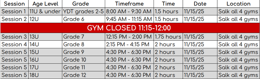 | YDT JO & JO Tryouts | November 15 | 2-12 | Schedule TBA |